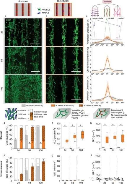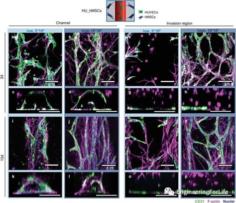 图3 随着第二种细胞类型的加入而形成的结构化微血管网