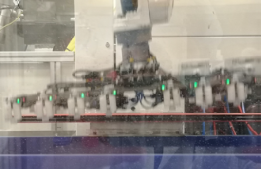 某英国工厂,利用机器人包装移液管并放入批次托盘中。
