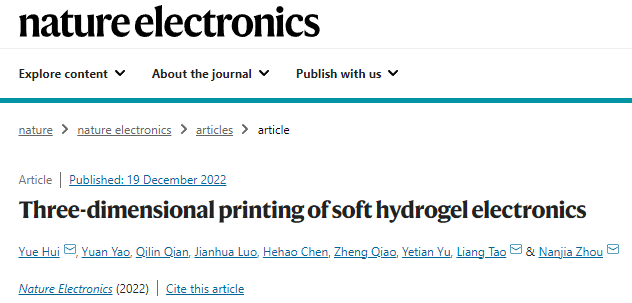 【功能性水凝胶电子产品的制造及生物医学应用】