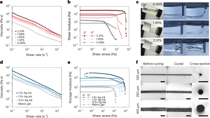 图 2. 支撑基质和导电油墨的流变特性