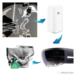 混合现实技术 (mixed reality technology,简称 MR)目前在辅助腹腔镜肾脏手术、肝脏分段切除、骨科脊柱等手术中应用广泛,但在神经治疗方面相关研究较少,例如目前疼痛治疗多以神经毁损性阻滞为主要治疗手段,精确寻找责任神经是治疗的前提条件,而各类神经多以骨性出孔为标志,隐蔽性大。引导技术多以CT, DSA 和超声引导为主,CT不能实现全程实时引导且反复照射辐射剂量大,DSA 全程引导放射剂量大,对于较小骨性标记物展示不清,超声技术学习曲线长,对于深部骨性标记物展示困难,且挤占术野,对于此类问题,MR智能手术定位引导系统,实现了实时跟踪智能定位,全程透视手术区,可减少组织损伤、降低危险性,使穿刺术更加精确可靠。