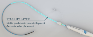 增加了一层稳定层,为瓣膜释放提供稳定性,这样也能确保瓣膜的精确释放。之前已有类似设计,是通过输送系统内部结构,增加硬度和支撑力,雅培此次的增加稳定层,是一种巧妙的方式。