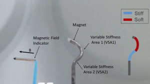 不同于我们之前了解的导管一旦成型,硬度几乎难改变。此款设计可使导管在在软态和刚性状态之间转换。
