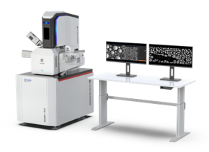 新品亮点:①该产品是国内首款低电压高分辨力扫描电镜,也是国内首款可搭载聚焦离子束(FIB)模块的大型场发射电镜平台;②配备新一代电子光学镜筒,具备优越电子光学性能。在保证高电压分辨力的前提下,重点优化了低电压下的分辨力,低压分辨能力实现1.5nm@1kV,达到国际先进水平;③具备宽大的主真空腔室,尺寸达到320mm×340mm×300mm(L×W×H),最大可进入Φ300mm×50mm的大型样品,为目前可扩展性最强的扫描电镜之一;④具备自动化进取样功能,配有多角度相机,能全方位监控腔室内情况;拥有贴近用户设计的系统交互软件,最大程度简化用户操作;配备软件算法,可智能化对图像中的特征物进行识别统计。