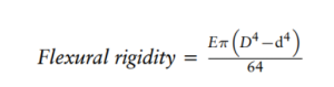 导管抗弯刚度(或弯曲刚度)是指导管弯曲所需的力偶。血管壁在血管弯曲处施加垂直于导管长轴的力。如果这种力克服了导管材料的弯曲刚性,导管弯曲并适应血管弯曲。然而,如果弯曲刚度过高或换句话说,导管耐弯曲,这种力会对血管壁造成显著的应力。这可能导致夹层或血管破裂。因此,在神经血管导管的设计中,需要低抗弯刚度。