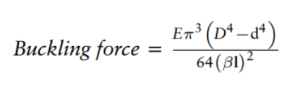 E=导管材料的弹性模量 D=导管外径 d=导管内径 β=压杆长度系数 l=导管长度