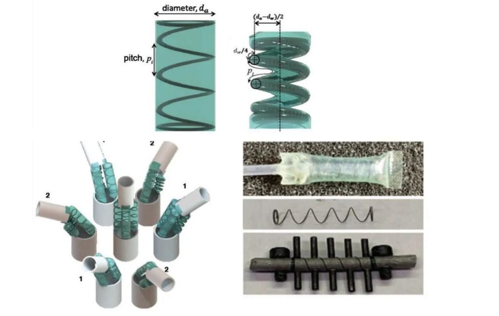 头尾之间的身体是机器人运动的主要驱动来源,身体由三个气囊组成,内部带有螺旋线圈: