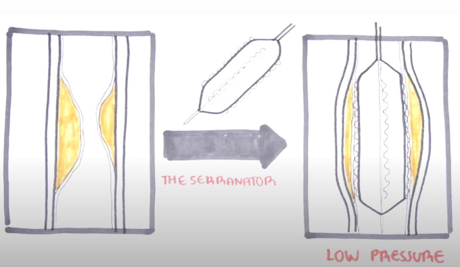 在BTK干预方面,医生能选择的有效手段往往有限,也因此针对普通球囊的设计改善成为了外周设计的重点:巧克力,刻痕,激凸(锯齿)等等。其目的均为“管腔增益”和血流量