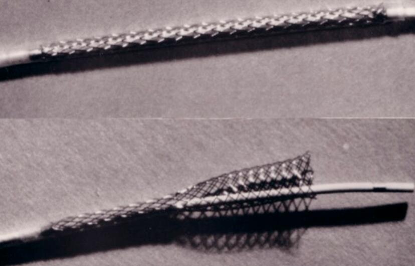 Hans Wallsten,也就是众所周知的Wallstent发明人,45岁前一直在造纸行业工作,直到1979年,苏黎世心脏病学家Ake Senning教授找到了Hans Wallsten,希望能合作开发一个螺旋形的假体植入血管以预防狭窄,螺旋形假体的探索最终失败了,但Hans Wallsten继续研究了下去,并在1982年成功申请了世界第一个自膨式支架的专利。当年的输送系统,研究团队参考了泌尿外科的设计,于是当保护套回撤时,内置的自膨式支架会逐渐展开,like the foreskin(原文)。
