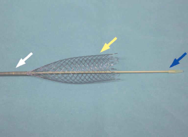 看上图,即可发现,经历了四十年,其实自膨式支架的输送系统改变并不大。目前的设计也沿用了具有约束护套的外部管和具有远端头部的内部管状构件,其内部管状构件近端连结到壳体组件,该壳体组件可在外部管缩回以展开支架时,防止内部管状构件的移动。外部管状构件的近端则附接到手柄/Hub,该向后拉动的手柄可选择安装于壳体组件的基座上。释放时,操作者拉动手柄/Hub,回撤外部管,此时内部管保持不动,即可原位释放支架。