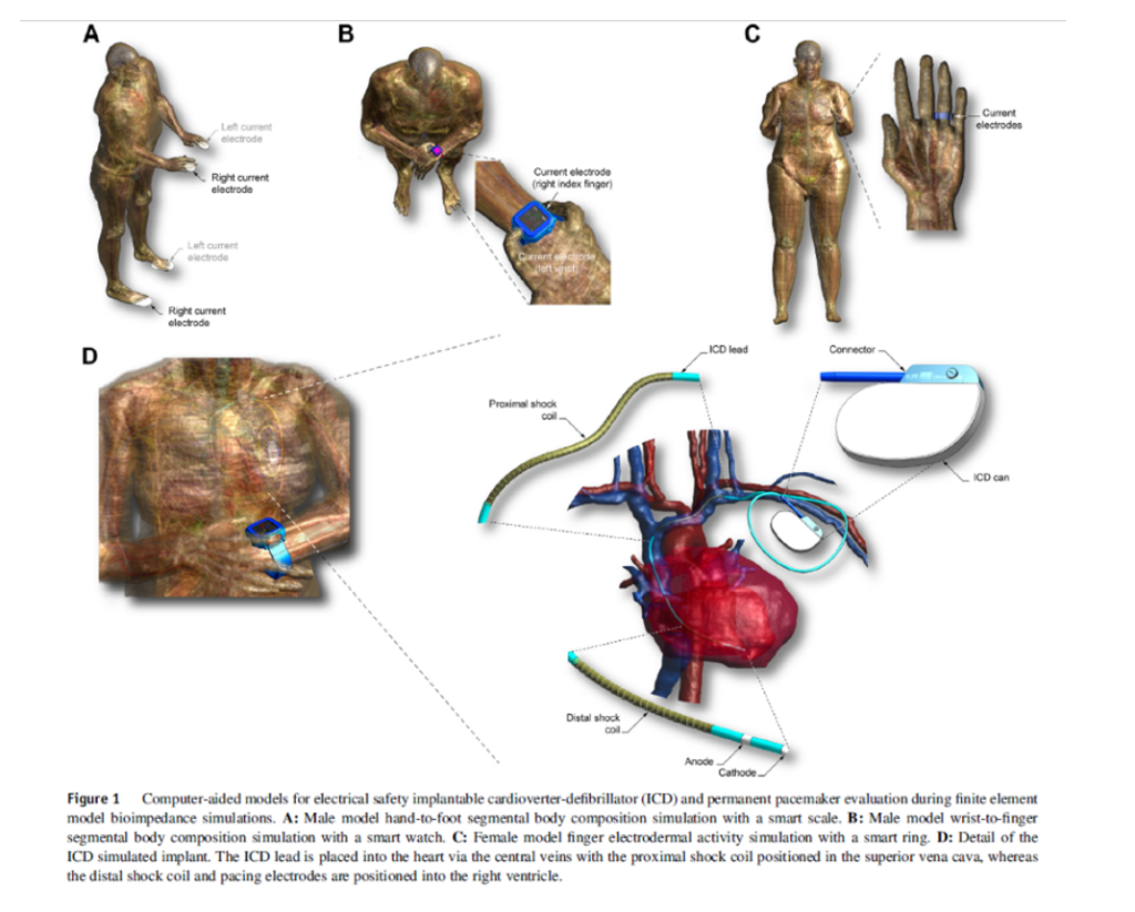本研究提供了基准数据,以评估带有生物阻抗技术的智能秤、智能手表和智能戒指在CIED上的安全性。该方法和结果代表了当今最全面的技术分析。并以FDA认可的ISO 14117标准作为参考。结果表明采用生物阻抗技术的消费类电子装置可能会诱发超过ISO 14117标准的电压的最高值。并且这些严重的不良事件可能在没有预兆的情况下发生在CIED患者身上,并有可能在这些患者接受生物阻抗治疗时干扰救命的治疗。