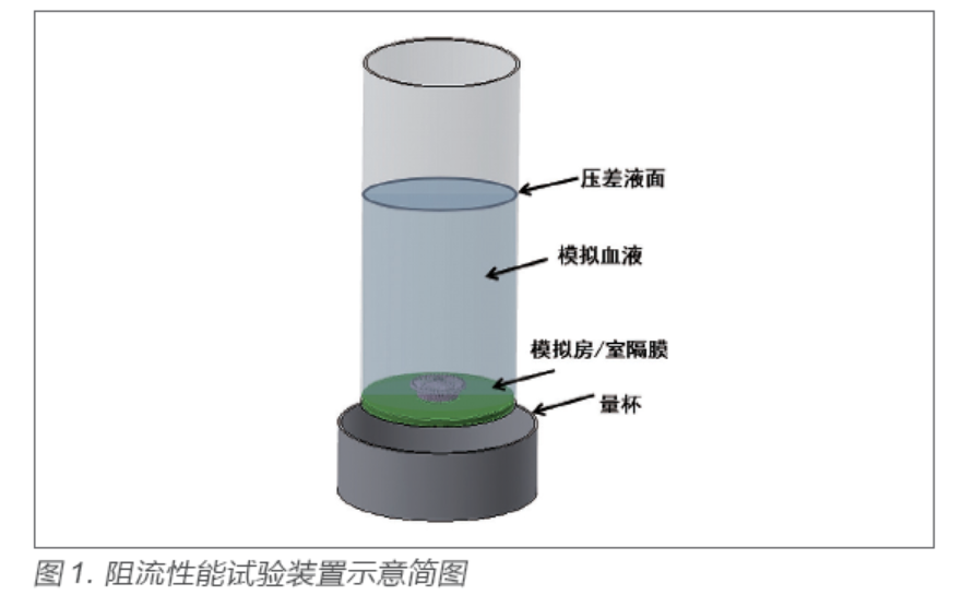 标准建议可通过在模拟人体生理环境下,采用模拟血液或与血液黏度相似的试验液体进行阻流性能相关试验。对于不同类型的封堵器可参考不同应用部位人体生理压差条件(详见表2)[8]。图1 给出了一种可供参考的阻流性能试验装置示意简图。