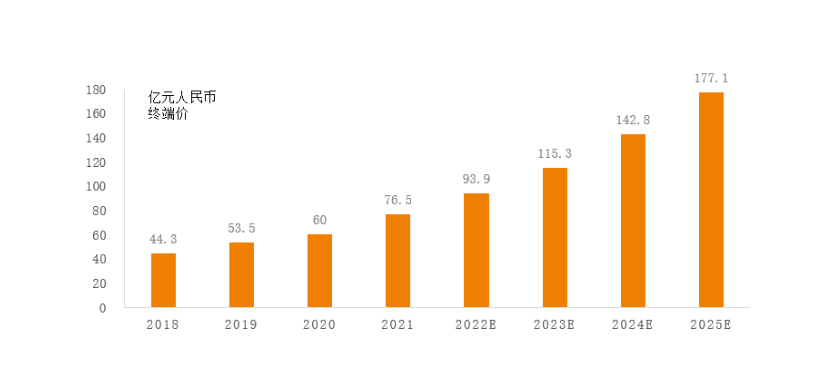 高频电刀是应用最成熟的细分市场,市场规模从2018年的70.5亿元,增长至2021年的105.5亿元,2018至2021年的年复合增长率为14.38%。预计将于2025年增长至189.5亿元,2021年至2025年的年复合增长率将为15.77%。