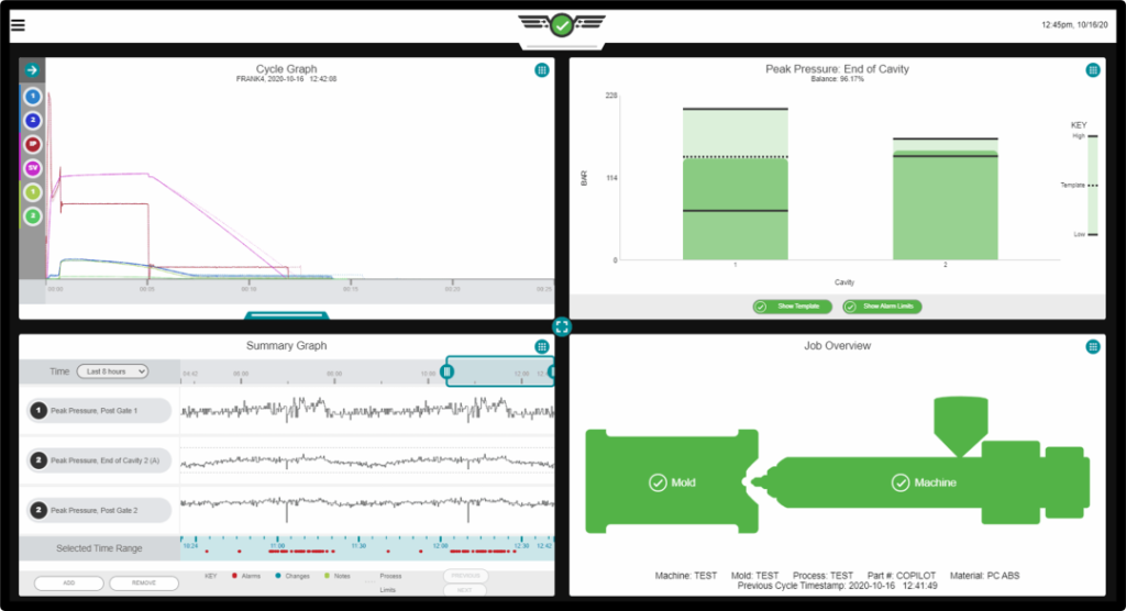 基于模腔压力测量的过程监控解决方案由传感器和监控系统组成,能够实施获取、处理、记录并反馈重要的工艺参数,包括注射压力、注射速度、模内压力、模内温度等等,这些参数对于透明注塑都至关重要。现场工程师能够基于这些关键数据做出100%以数据为驱动的决策。