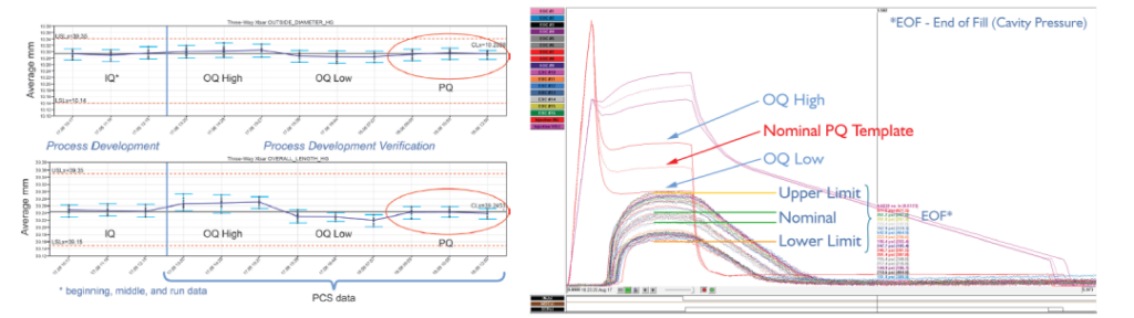 如果材料参数波动过大,使得先前的工艺窗口无法持续生产出合格的产品,就需要再次验证该工艺过程,这需要一系列耗时的试验(IQ/OQ/PQ)。通过使用模腔压力,这一切都可以变得容易得多,因为模腔压力值和产品质量特性之间的相关性是已知的。