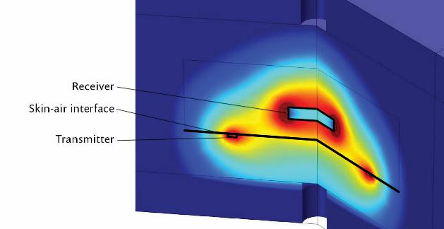 图注:Receiver – 接收器;Skin-air interface – 皮肤-空气界面 ;Transmitter – 发射器