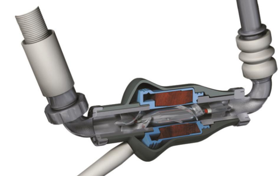 几何结构和尺寸对装置的整体功能有着重要的影响。植入 LVAD 时,外科医生首先将 LVAD 的一端连接到左心室,然后将另一端连接到升主动脉(见图 2)。装置的体积越小,操作就越简单,也就越不容易干扰相邻的器官或组织。借助仿真,研发人员可以在完成物理样机之前,评估不同的尺寸或几何结构对LVAD 设计的影响。