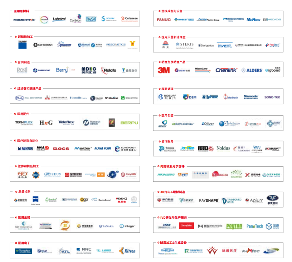 医用材料 ,粘合产品和医用配件展区展商包括路博润、迈图、艾曼斯、塞拉尼斯、奥美凯、埃万特、SP Medical、斯迈利、Yangbum、罗信、康德莱、诚发、明石、盛玛特、双九、达尔乐等,将集中展示包括医用级热塑性聚氨酯(TPU)、生物制药管硅胶、Grilamid TR透明聚酰胺、牙科零部件、运动医学PEEK模具、压缩弹簧、蛇骨、模组、弹簧管、前端头等精密加工材料及部件。