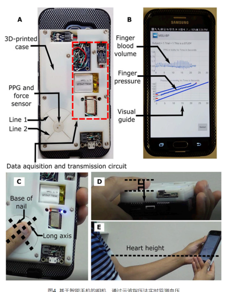 图4. 基于智能手机的相机,通过示波指压法实时监测血压