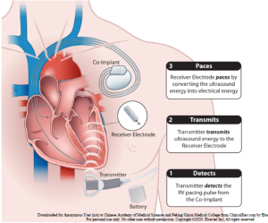 无导线起搏器是一个独立的发生器和电极系统,通过股静脉直接植入右心室,不需要胸部切口或皮下囊袋,它比传统起搏器小90%。有一项关键的临床试验的结果发现,无导线起搏器可以为不能使用常规CRT和心外膜电极植入失败的患者提供心脏再同步化治疗(CRT)。新型的WiSE CRT系统消除了因为导线产生并发症的可能性,并为医生在植入该装置时选择左心室心内膜的起搏位置提供了更多自由。