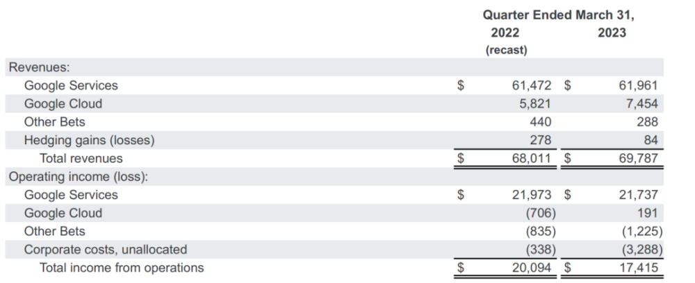 财报显示,2023 年第一季度,谷歌云收入为74亿美元,高于去年同期的58亿美元,同比增长27.5%。同时,该公司还报告称,去年谷歌云业务亏损7.06亿美元,而今年报告截至Q1取得了1.91亿美元的收益。2020年时,该部门亏损高达56亿美元。