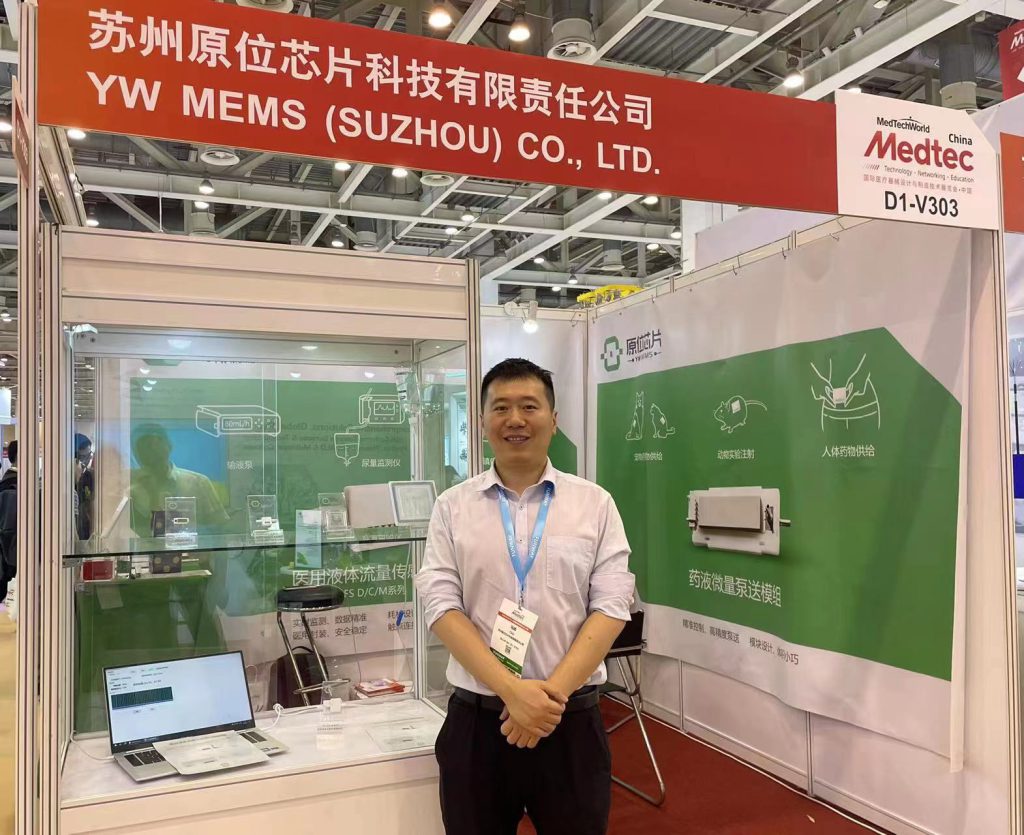 在MEDTEC 2023展会上,苏州原位芯片科技有限责任公司(简称“原位芯片”)重点展出了医疗液体流量传感模组和药液微量泵送模组,两款产品均为国内首创,吸引了大批的观众前来参考、洽谈。