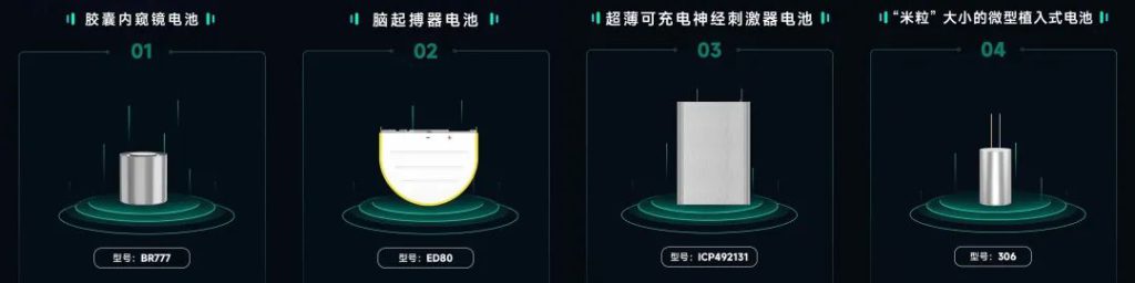 体内应用医疗电池全面解决方案共有四款产品:其中,“胶囊内窥镜电池”仅有7毫米,是目前全球直径最小的胃镜电池产品,比能量最高400Wh/L,续航可达10~15小时。