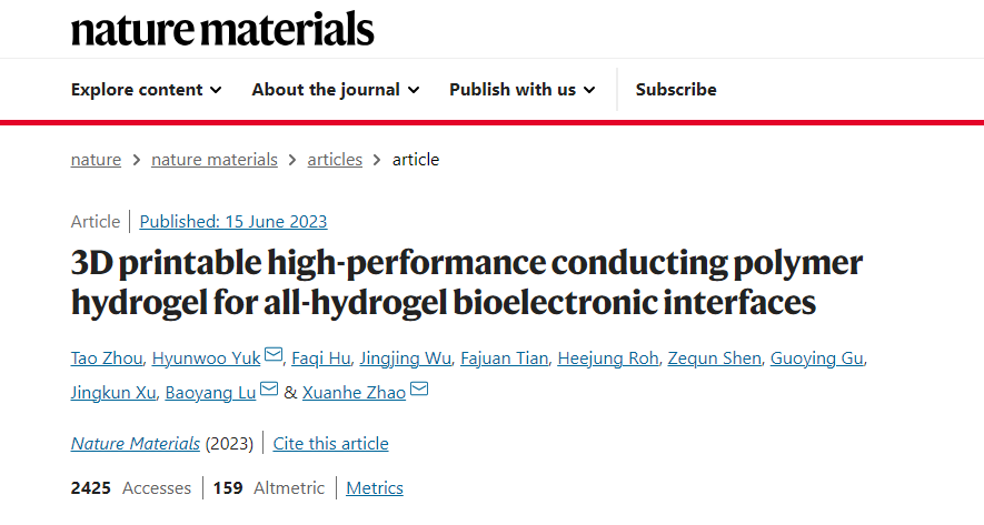 研究人员声称,这种新材料是一种高性能导电聚合物水凝胶,有一天可能会取代金属,成为具有生物组织外观和触感的功能性凝胶电极。这项研究得到了美国国立卫生研究院的部分支持。最新研究成果已于近期发表在了《自然材料》杂志上。