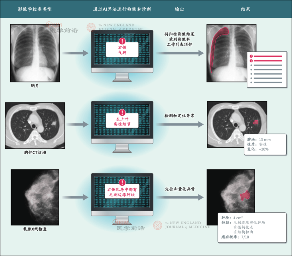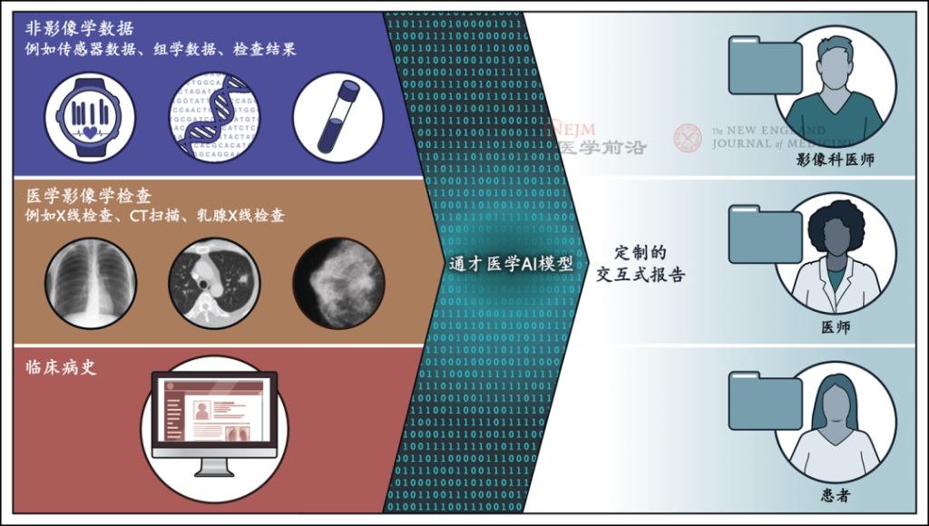 今晨,《新英格兰医学杂志》(NEJM)发文讨论当前临床影像学AI系统优势和局限性、基于AI的临床路径,以及生成式AI和大型多模态基础模型的潜在影响。我们在此简介其主要内容,全文将于明天中午在《NEJM医学前沿》官网发布。