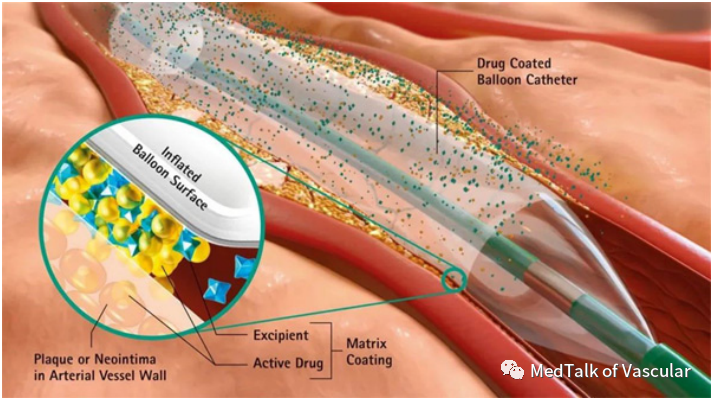 药物涂层球囊:球囊表面载药,如雷帕霉素、紫杉醇或雷帕霉素衍生物;