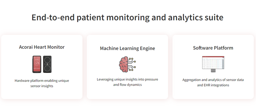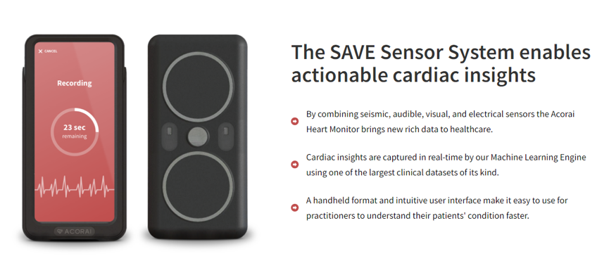 Acorai 正在开发一种用于无创心内压监测的可扩展医疗设备,以改善全球 6400 多万患者的心衰管理。Acorai 系统采用获得专利的 SAVE 传感器系统和专有的机器学习模型,经临床验证,其准确性与有创黄金标准相当。