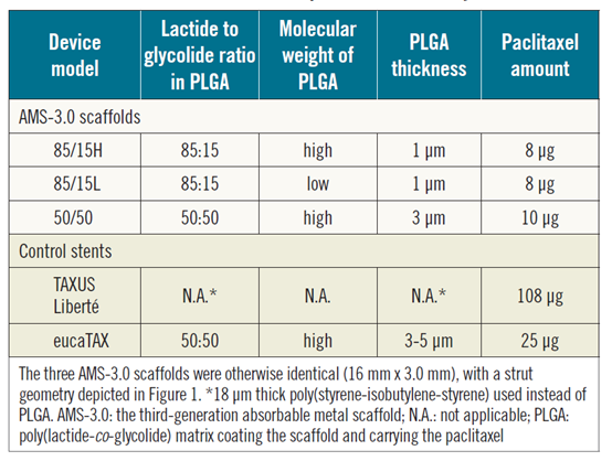 图7 三种AMS-3.0支架在大小上完全相同,但使用了不同的聚合物涂层设计