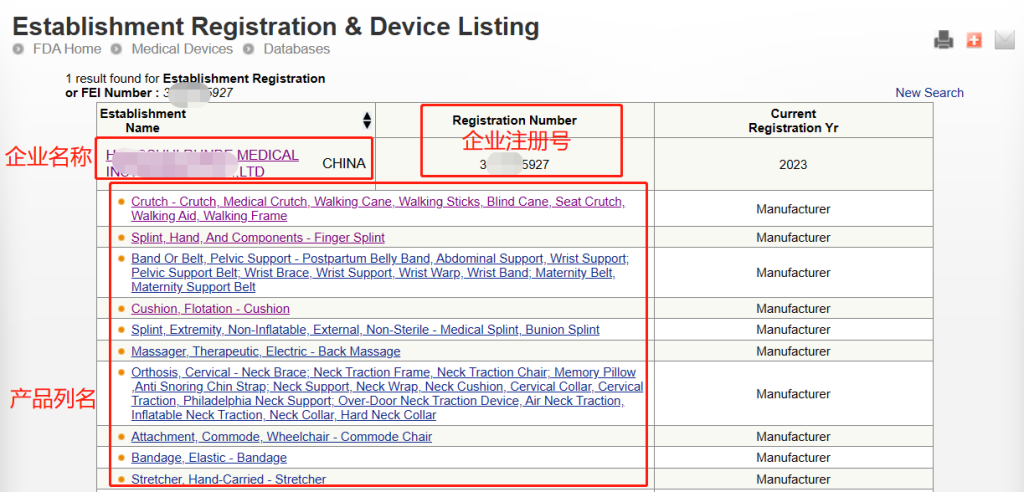 注意:此查询方式可查询到的是制造商、进口商的注册信息以及产品的列名,但产品注册号(Device Listing NO.)属于保密信息,是无法直接查询到的。