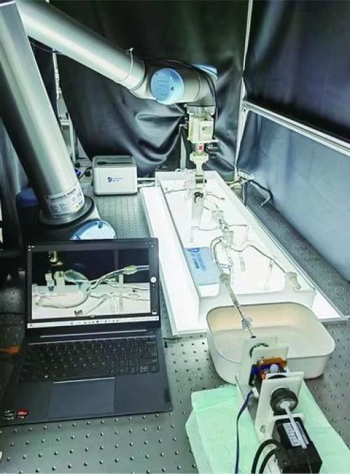 磁驱动介入导丝机器人在远程血管介入手术中的应用示范。研究团队供图