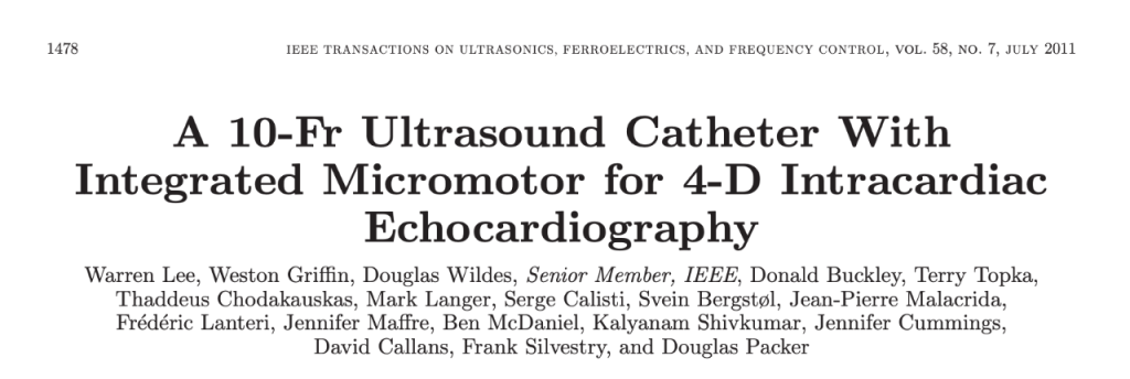 图5 2011年,第一篇4D ICE超声导管原型(GEN III)的报道,注意当年的作者中包含了GE和BW的科学家们