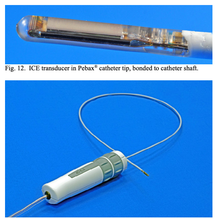 随后,在食道超声小型化的基础上,在二维超声导管诞生后不久,即迎来了4D ICE导管。如下图5,这是个10Fr,带有64元件、6.2MHz的相控阵导管。这也是既往集成在12Fr导管(GEN I)上,或70元件、112元件换能器的优化版。