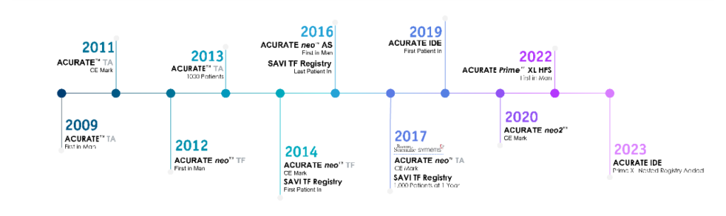 不过Acurate Neo2在于Evolut系列和sapien系列竞争中还是又不足,因此又开始升级Acurate Neo2。波科推出最新一代TAVR产品—ACURATE Prime XL。ACURATE Prime XL能够治疗所有手术风险级别的严重症状性主动脉狭窄患者。ACURATE Prime XL已经完成Nested Registry临床研究入组。