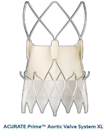ACURATE Prime XL是 ACURATE neo2 瓣膜的升级版本。ACURATE Prime XL和ACURATE neo2一样都采用 Active PVseal™ 技术和覆盖支架整个腰部的加长密封裙、旨在提供清晰视觉参考以方便准确定位的不透射线定位标记,以及方便冠状动脉通路的超宽稳定拱。