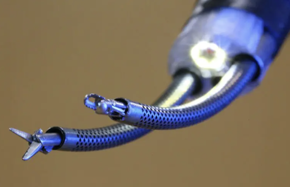 根据实操需求,其中,其手臂直径大约为2.8毫米,完全伸展时长度为 35 毫米,能提供43 毫米直径的工作空间。作为其中的关键工具,机械臂采用镍钛合金管制成。