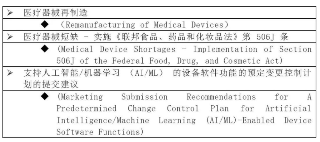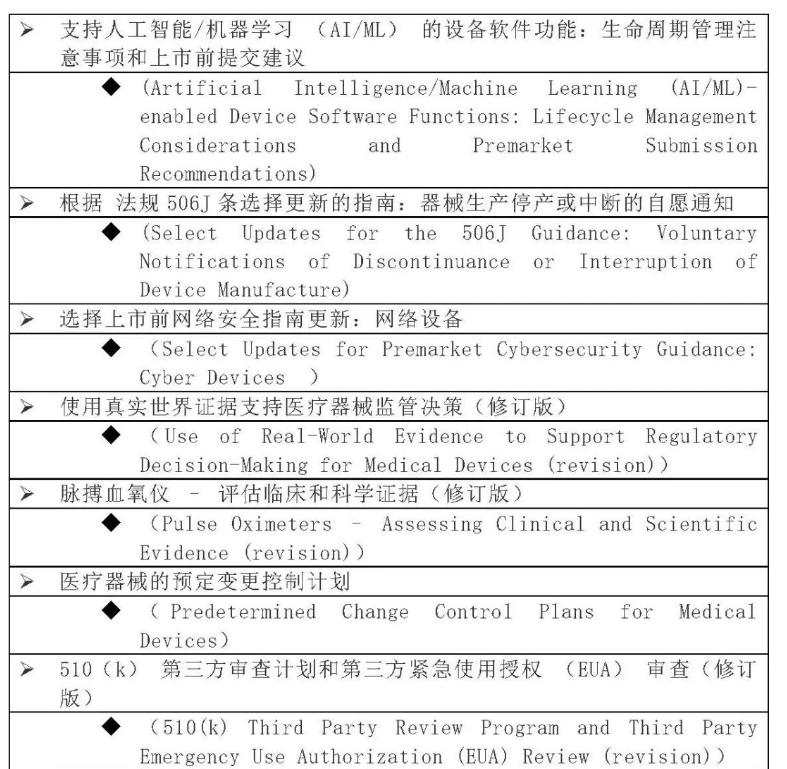 -FDA打算在2024财年在资源许可的情况下发布的器械指导文件。