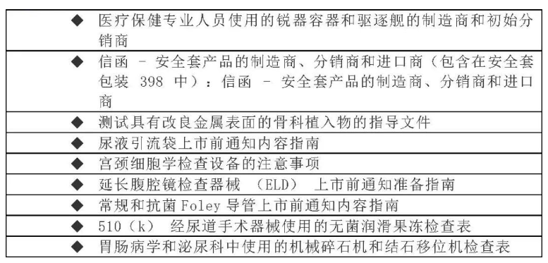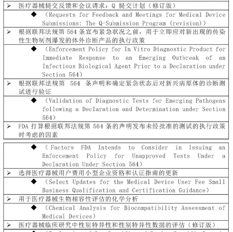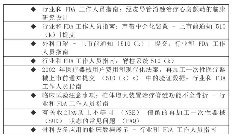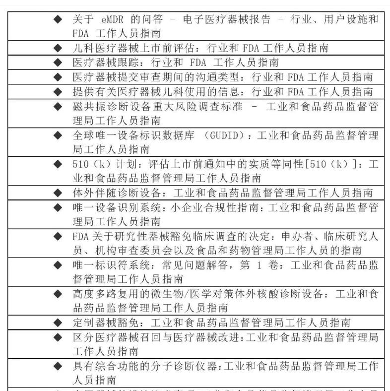 第二部分:在资源许可的情况下FDA计划发布的指导文件