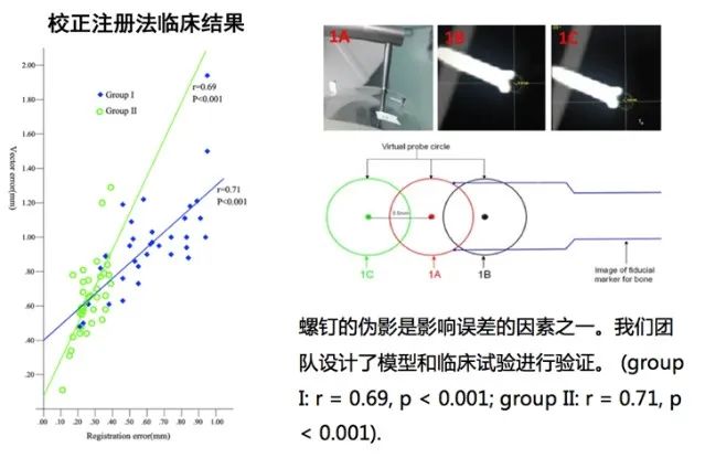 常规开展神经外科机器人手术,初探机器人辅助DBS手术。注册误差控制在0.3mm左右,最终获得电极植入误差0.5mm左右。团队自研的“机器人DBS手术校正注册法”:机器人注册探头圆圈向标记点尖端移动0.5mm误差最小,减少机器人手术误差,确保DBS手术的精准性。同时,微电极正确使用、最佳皮层穿刺点、二次注册验证、模拟靶点验证及校正等提高了手术植入的精准度。2018年4月11日, Benabid教授和Lozano教授评价“机器人DBS手术校正注册法”为DBS手术应用最具代表性“新技术”之一。