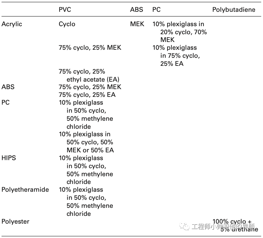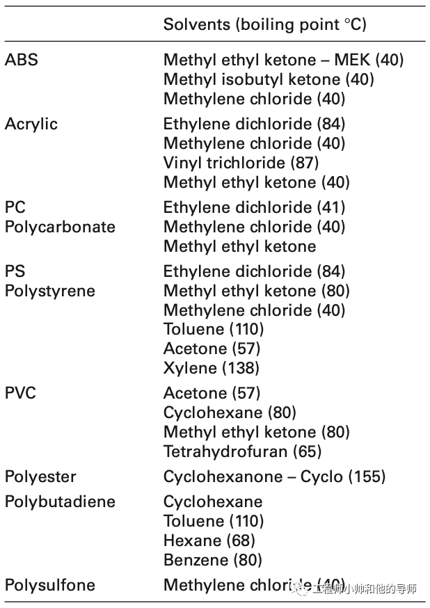 表10.2 适用于粘接的溶剂与聚合物的兼容性