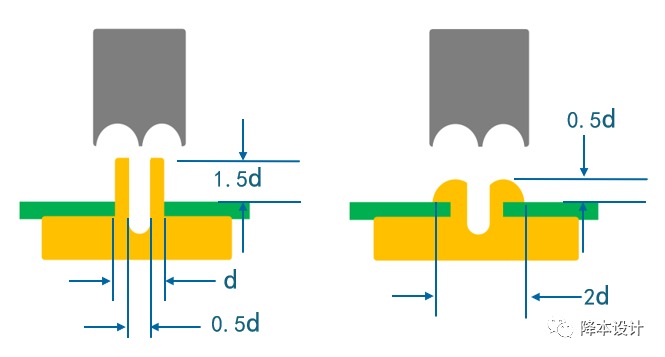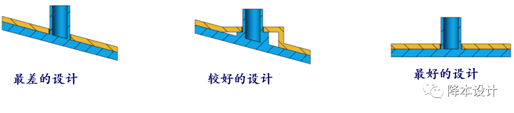E. 避免在斜面上设置热熔柱;如果别无选择,需要进行如下图所示的优化。