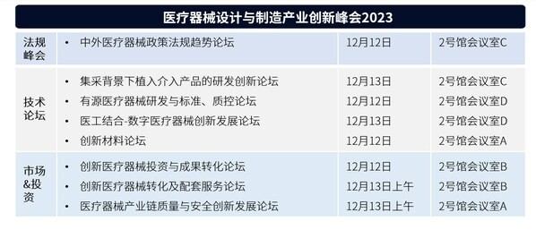医疗器械设计与制造产业创新峰会2023日程表