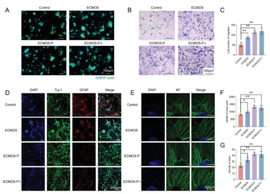 图 6. 通过ECMOS-P-I治疗促进神经再生