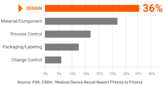如下图所示,从2003年到2012年,FDA发起的超过36%的医疗器械召回是不良的可用性设计。