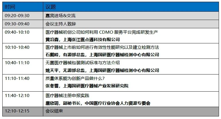 2023医疗器械展览会Medtec创新展强势会议“创新医疗器械转化及配套服务论坛”,邀请到上海国研医疗器械检测中心有限公司物理部总监、上海市国研医疗器械产业发展研究院副院长、副秘书长,中国医疗行业协会人力资源专委会等企业的嘉宾讲解议题:医疗器械初创公司如何利用CDMO服务平台完成研发生产、医疗器械上市前如何进行有效性性能研究以及建立检测方法等等。现在点击预登记,报名加入2023医疗器械展览会Medtec创新展!