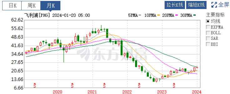 近两年,飞利浦出台了一系列举措稳定公司股价,就在2023年8月公司同意大利富豪阿涅利家族的控股公司Exor达成了一项协议,同意Exor集团以约26亿欧元(折合人民币约为206亿元),收购飞利浦15%的股份,成为飞利浦的最大的单一股东。