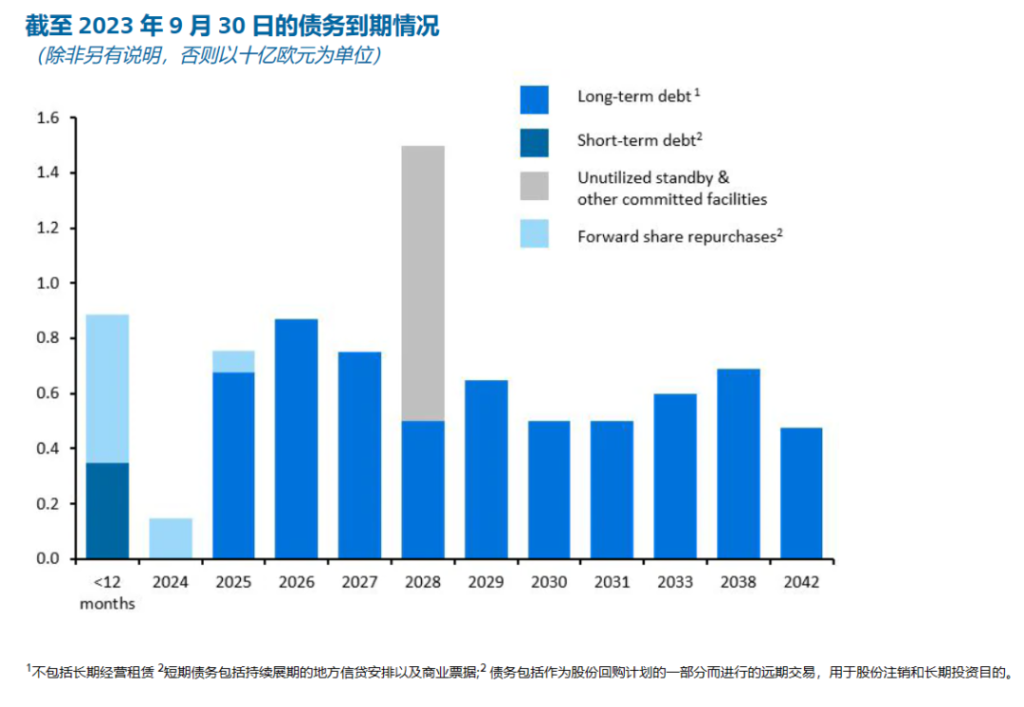 根据飞利浦最新发布的2023年第三季度(截至9月30日)财报,该季度公司根据其欧洲中期票据 (EMTN) 计划发行了 5 亿欧元(约合人民币40亿)的 2031 年到期的固定利率票据。票据的发行进一步加强了债务到期状况,并产生了债务中性效应。